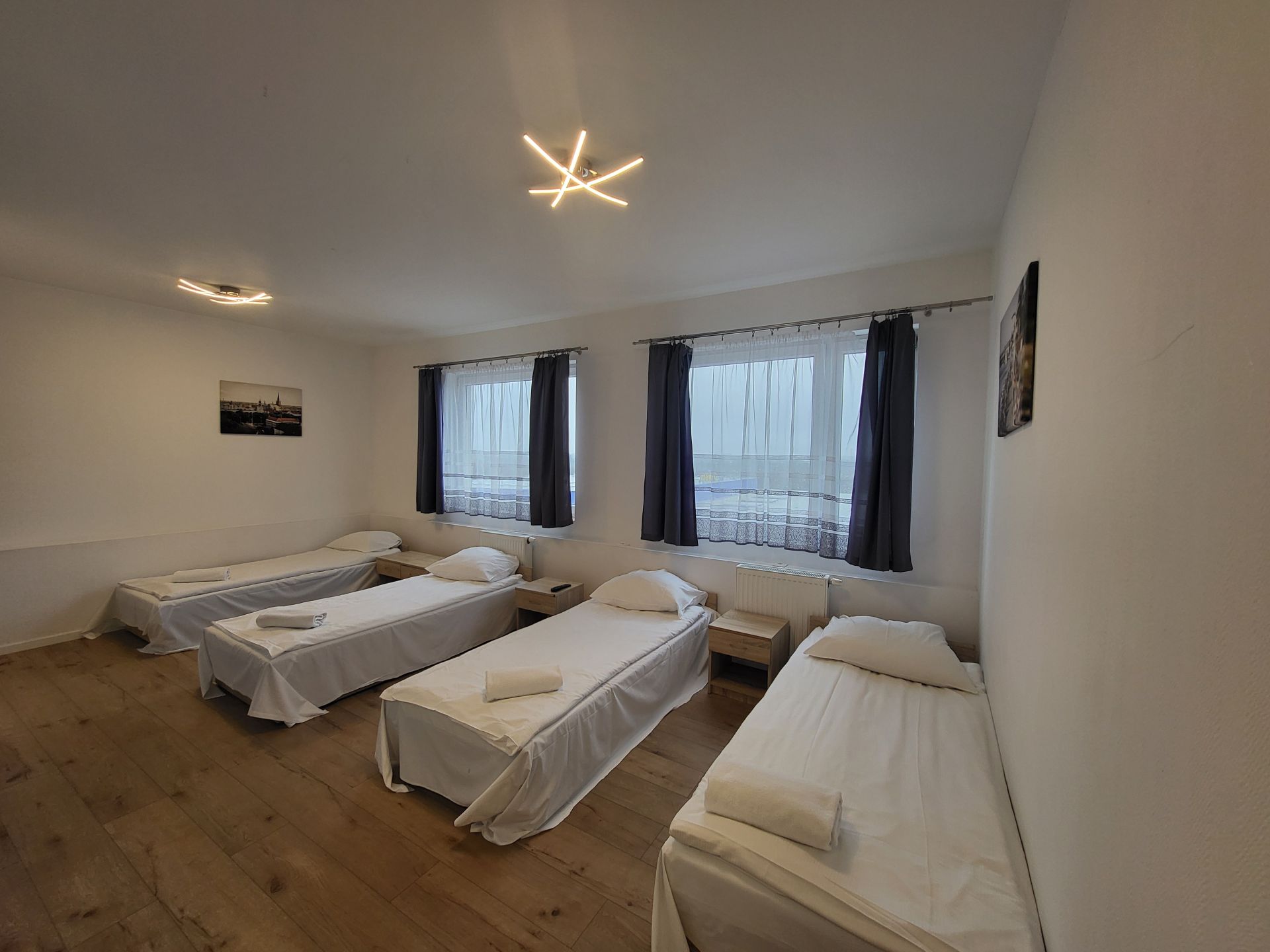 Pokój czteroosobowy. Pokój wyposażony jest w cztery łóżka pojedyncze z możliwością połączenia na życzenie Gości, telewizor oraz aneks kuchenny z kuchenką mikrofalową. Do dyspozycji Gości jest prywatna łazienka.